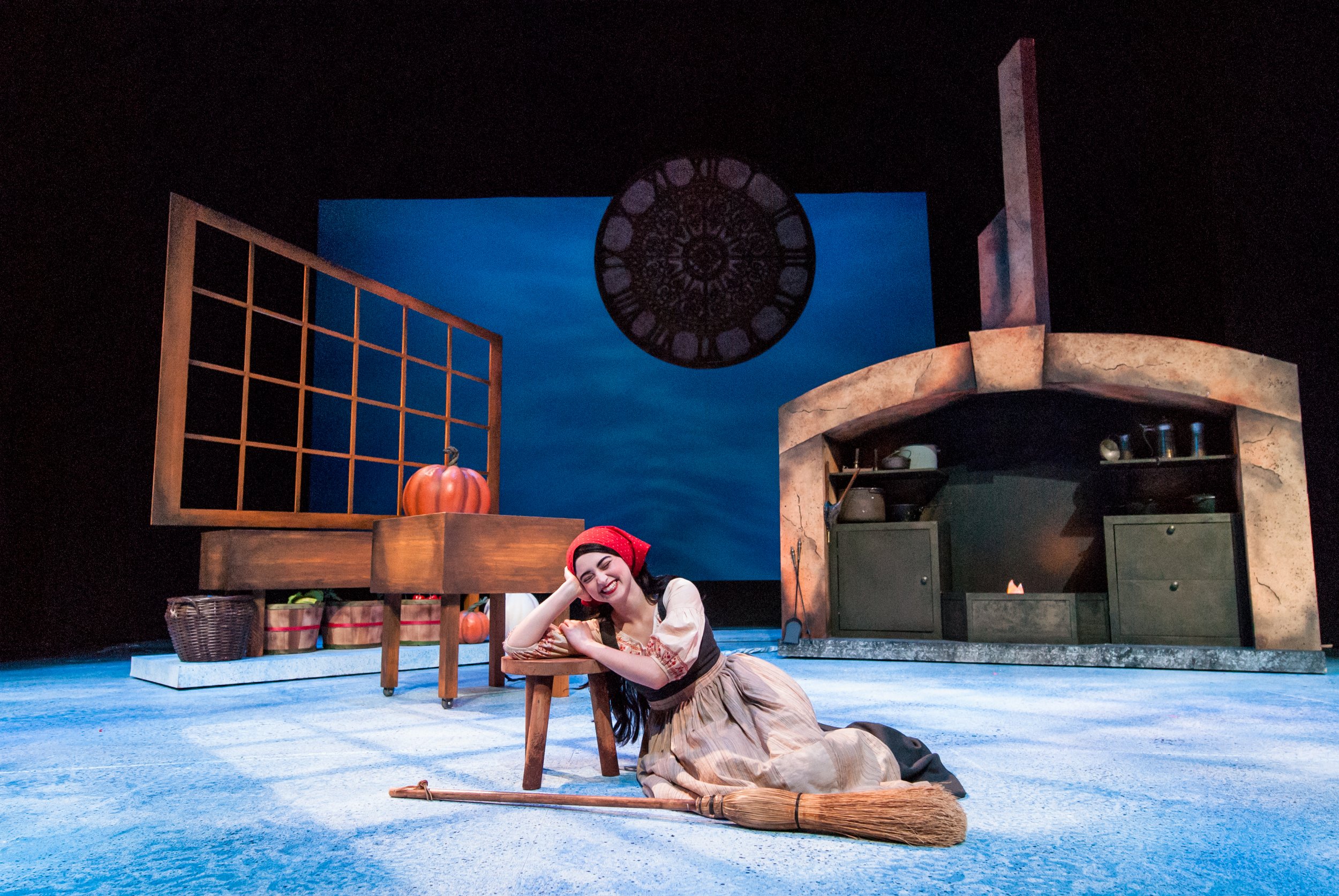 In Scot Copeland’s final show as director, he takes us into the world of Cinderella, set in late 19th century Austria at Christmastime. The scenic design takes cues from the Toy Theatre tradition, and fully embraces theatricality, with beautifully painted soft flats framing the action. The characters and script find influences from British panto to Dickens’s Christmas Carol, as the clock approaches midnight.